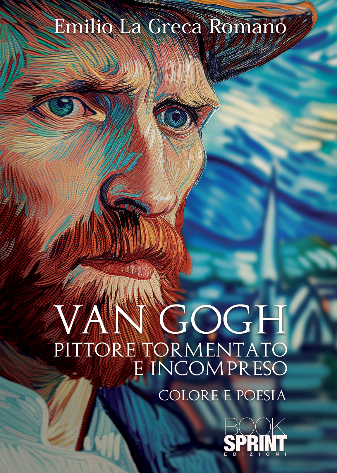 Vincent Willem van Gogh, figlio di un pastore protestante, visse fino a trentasette anni. Nacque il 30 marzo 1853 a Groot Zundert in Olanda, morì il 29 luglio 1890, sparandosi in un campo, nei pressi di Auverse. Il pittore si mosse nella corrente impressionista come ricercatore di luce naturale e per lo studio della luce sulle forme; tuttavia, fornì un prezioso e fattivo contributo all’Espressionismo, esplorando le tematiche psicologiche ed emotive a mezzo la forza dei colori e del pennello. Emilio La Greca Romano, con lo strumento poetico, accosta alla visione, allo stile artistico caratteristico di Van Gogh, figura chiave dell’arte moderna, con appassionata espressione colora le sue parole coi toni intensi e la bellezza dei paesaggi emotivi. La poesia entra nell’arte, assorbe il colore vivo, rimane graffiata e carezzata rispettivamente dalle spigolature e dalle curve materiche. Il verso rasenta le tecniche audaci e innovative dell’arte di Van Gogh, si muove esplorando lo stile unico del pittore. Come per Van Gogh il colore non serve soltanto per rappresentare la realtà, ma crea un impatto emozionale, così il verso precipuamente si lascia modellare per trasmettere l’impulso del sentire. Sono versi emotivi che seguono il tratto delle pennellate emotive. Van Gogh si distingue per la dinamica del suo pennelleggiare. Audacia e slancio muovevano il pennello del pittore impregnato di denso colore. Tanto il tratto del colore, quanto lo sviluppo della poesia, trasmettono un movimento dinamico e creativo. L’Autore di questa silloge non manca nel fornire una certa carica di simbolismo, la sua poesia muove gli occhi fra linee vorticose, necessarie al pittore per costruire esiti dinamici e sensazioni di pura energia vitale. Inoltre entra, dunque, nel dipinto e non tralascia l’esperienza ora della luce, ora dell’ombra, quelle volontarie esagerazioni di Van Gogh finalizzate ad accrescere l’effetto sentimentale. Dalla poesia scaturisce un ulteriore dato certo e caratterizzante dell’opera pittorica: l’intensità emotiva. Il pittore, parimenti, infatti, trasferisce sulla tela il suo autentico riflesso della condizione interiore. La gioia, l’ansia, l’empatia per la condizione esistenziale e umana. La possanza della creatività pittorica di Van Gogh è scaturigine inevitabile della sua intensità emotiva. Tale caratteristica non passa velata in questa silloge e si presenta relazionabile anche fuori da una specifica contestualità spazio-temporale. L’autore propone in poesia il profilo di uno dei più grandi artisti post-impressionista, ben collocabile nell’espressionismo, dedica i suoi versi vibranti e intensi alle medesime pennellate di Van Gogh, fatte tutte di grande movimento e intensa vitalità; di questa silloge riscopre, sicuramente in modo originale, la profonda indelebile impronta che l’artista ha lasciato nell’arte sia per originalità di tecnica pittorica, sia per potenza emozionale. Entro il simbolo di assoluta libertà di questo maestro, La Greca Romano, ha modulato la sua azione poetica approfondendo il senso artistico e l’effetto culturale che il cosiddetto “pittore pazzo", tormentato e incompreso, ha incisivamente segnato nel nostro tempo.